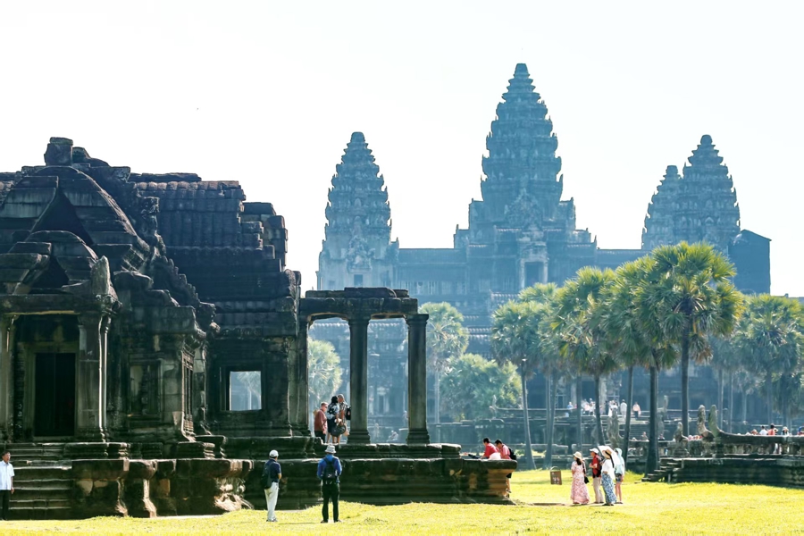 游客在柬埔寨暹粒吴哥古迹游览。(新华社发)