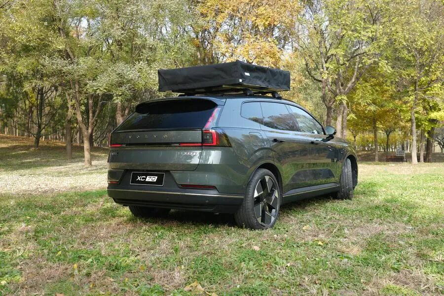 装载能力也很强,常规后备厢408升,把后排座椅放倒,容积直接到1456升,以后带孩子露营,放个儿童推车、帐篷都没问题,储物空间绝对够使。露营最爽的就是“用电自由”,全新XC70有6kW的对外放电功率,电池容量39.6kWh,要是电不够了,发动机还能自动启动发电,带个露营冰箱、咖啡机,晚上再用投影仪看个电影,这体验不比“苦哈哈”的露营舒服多了。